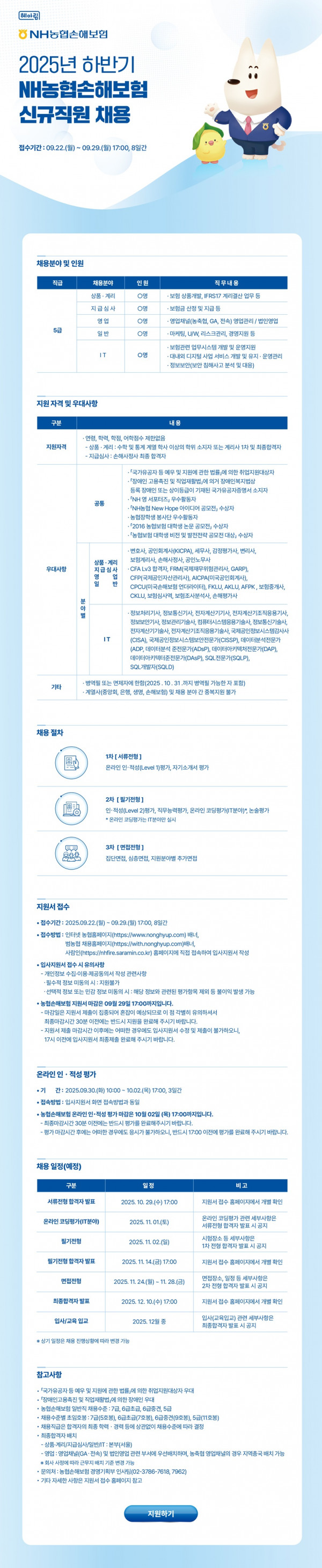 ▪ 농협손해보험 지원서 마감은 09월 29일 17:00까지입니다.