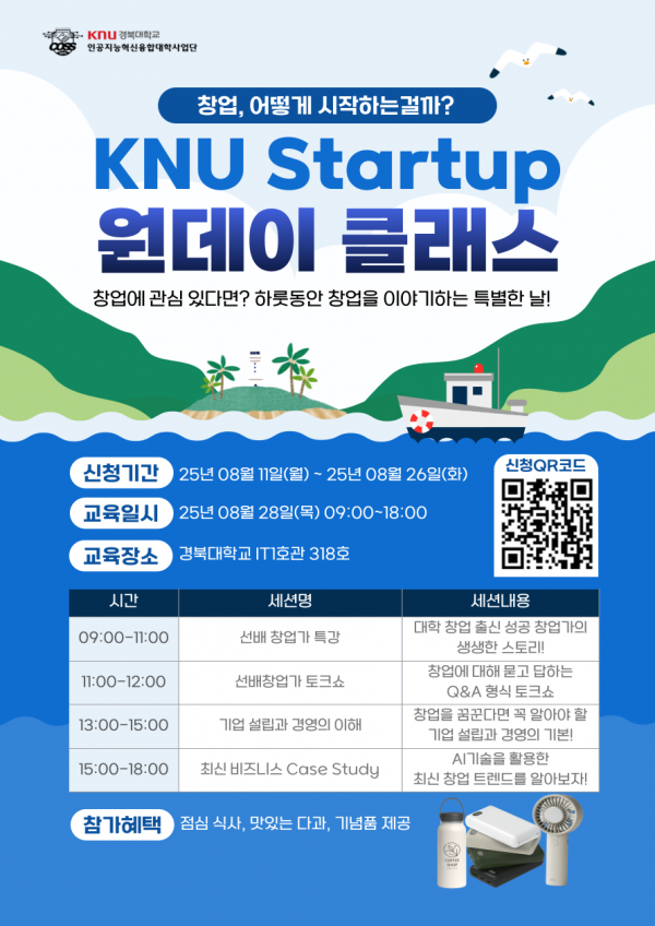 인공지능혁신융합대학사업단에서 2025 여름방학 스타트업 원데이 클래스를 다음과 같이 개최하오니 관심있는 학생은 참여하기 바랍니다.