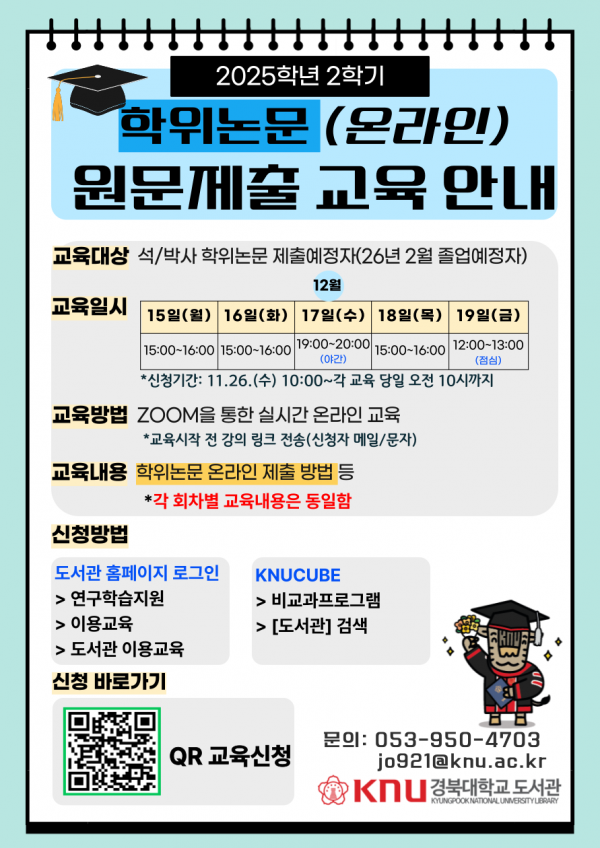 1. 교 육 명: 2025학년도 2학기 학위논문 원문제출 교육